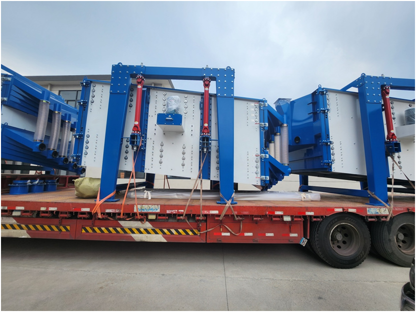本次發(fā)貨的是客戶(hù)在原有的壓裂砂生產(chǎn)線增加篩分產(chǎn)能,新增加三臺(tái)2040型雙四層方形搖擺篩分系統(tǒng),由FU刮板機(jī)、篩分暫存?zhèn)}、流量控制蝶閥、散風(fēng)裝置及成品輸送系統(tǒng)組成。